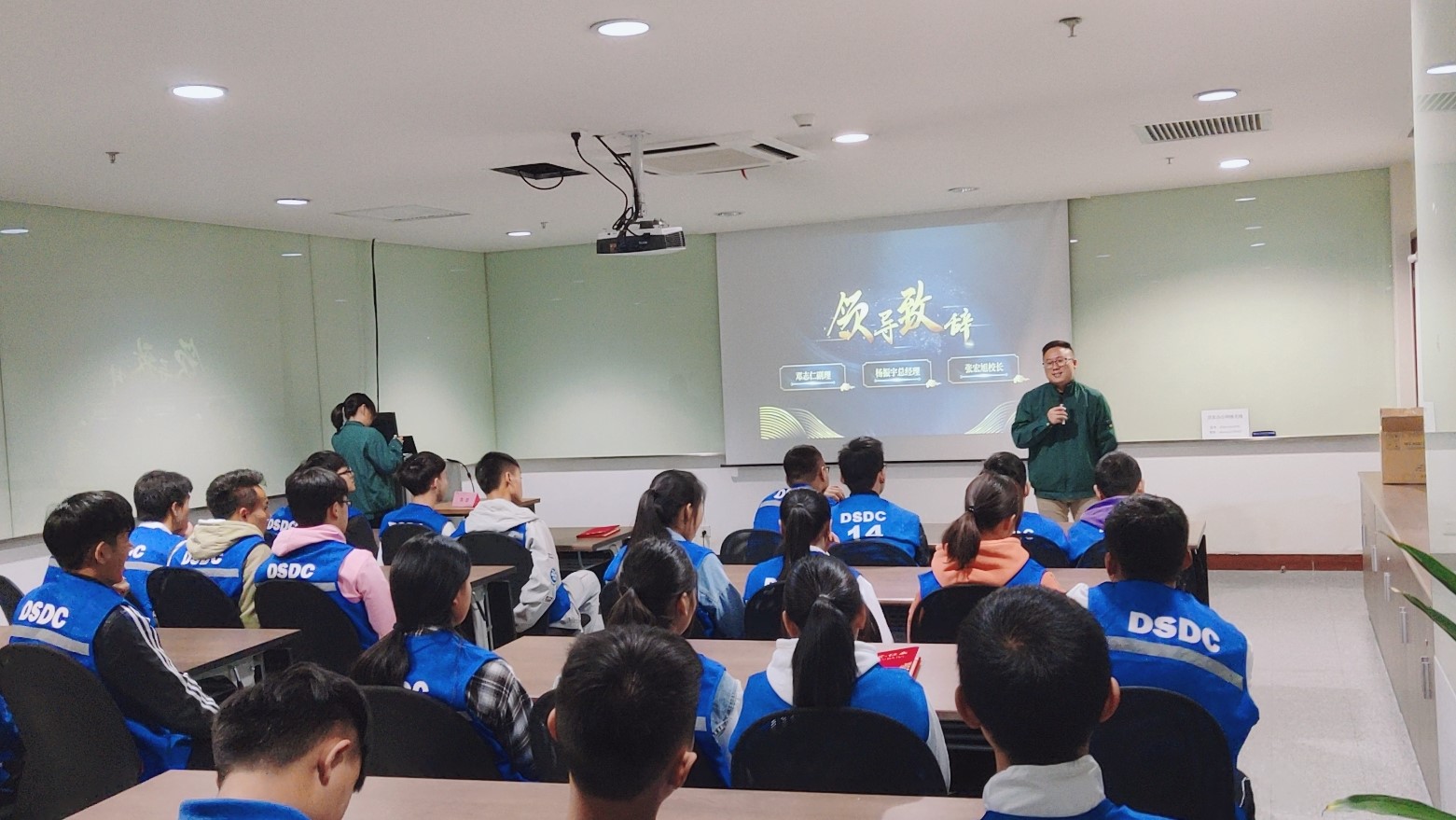 上海顶实仓储有限公司总经理杨振宇则从现代物流场景的对比,向学生们介绍了顶实仓储作业现场的实际操作内容,鼓励大家能够从基础做起,学习到更全面的物流全景流程,同时借由“人生四大喜”抛砖引玉,希冀同学们能够从未去到未来能够取得“幼有名师启蒙,少与美女定情,壮与英雄共鼎,老与方外论交”的成就,最后寄望大家能够在自己的工作岗位上做一行爱一行,抱着务实的心态,给自己以后的职业生涯进行合理的规划,成为人生的赢家。